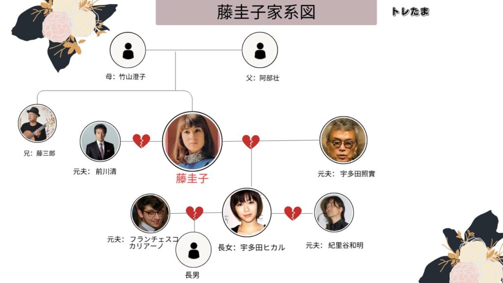娘・宇多田ヒカルさんも世界的アーティストとなり、三代続く芸能一家を形成しています。