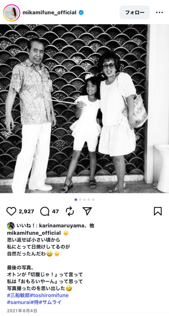 詳しい真相は三船敏郎さんと喜多川美佳さんにしか分からないのかもしれません。
